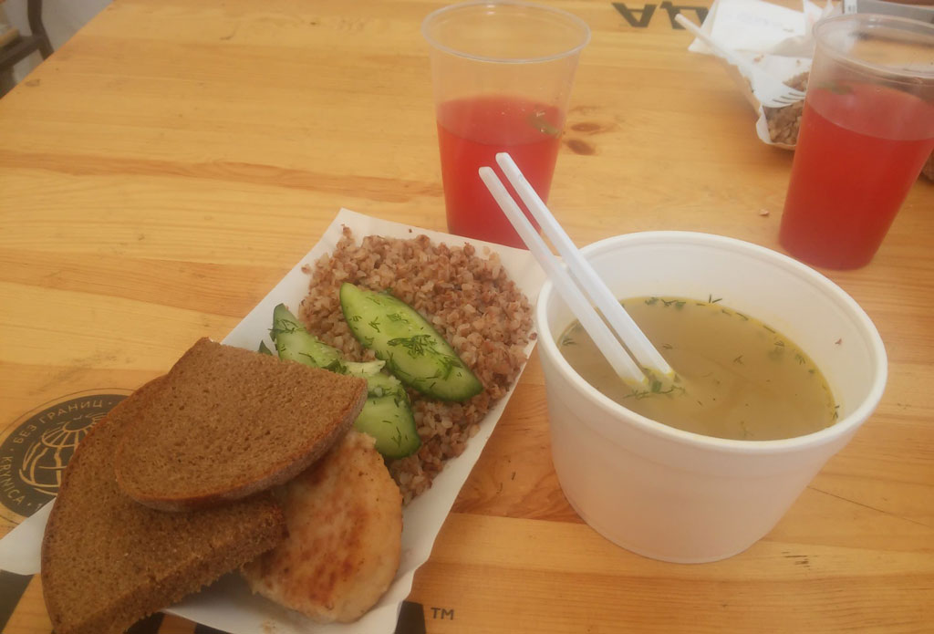 Спустя 20 минут мы с компаньонами побежали заминку. Потом нам дали вкусный обед.