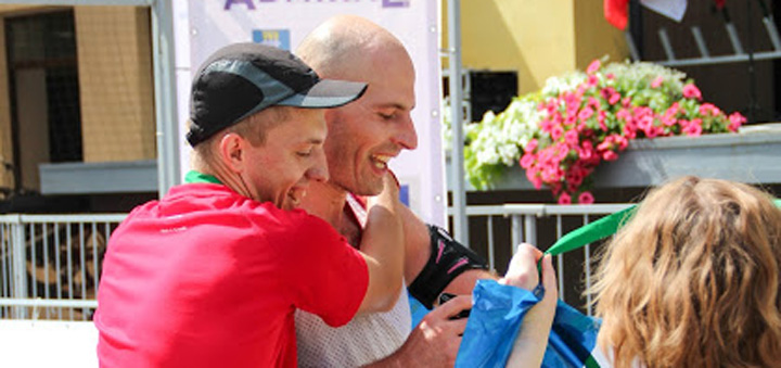 37–39 км — просто муки, бег через силу, 4 стакана изотоника. Заставлял себя сильно. Меня и Роман обогнал, и Одиссей, но ближе к 40 км догнал Одиссея. Время — 31:59 мин., темп — 6:24 мин. Бежим 41 км, я начинаю отрываться от Одиссея и спуртовать на последнем километре, темп был примерно 4:40 мин. на км.
