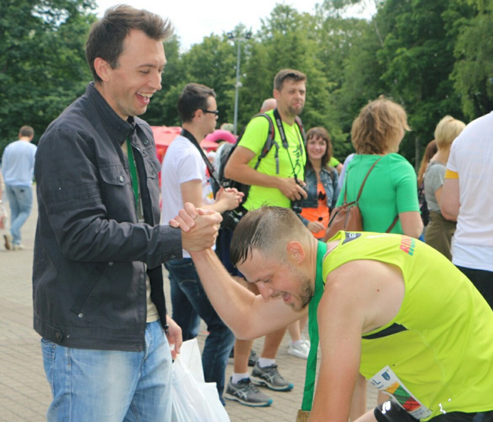Следующие 5 км мы с Виргинтасом бежали вдвоем, держа темп 5:20 мин./км.