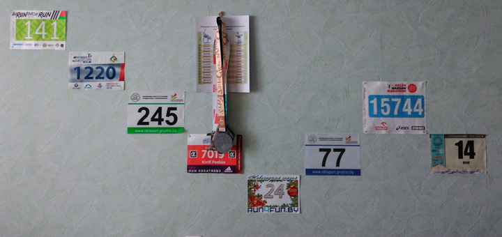 За год было пройдено не много дистанций, но для меня все очень важные: 5 км на «Барановичи Run III»; Минский полумарафон; 6 км на Grodno Run; 8 км на чемпионате Гродненской области по легкоатлетическому кроссу; 10 км во Львове; 4 км новогоднего забега с Run4fun.by по пересечённой местности; 4,3 км на «Забеге трезвости» 1 января; часовой бег на «Гродненской весне (13,245 км), 10 км в Варшаве; Bison Rase (5км и 33 препятствия); 10 км на «Гарадзенскай вандроўце».
