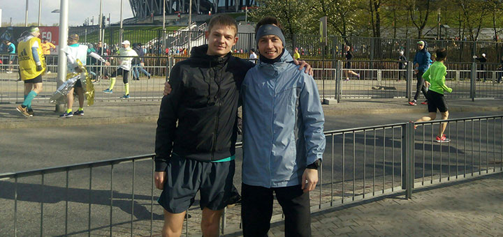 Но я сходил еще за одной порцией чая и употребил его с еще одним батончиком. После этого мне стало легче. Подействовала глюкоза. Еще немного поболтав, я пошел обратно к палатке, где делали массаж. Там меня ждали Наташа и мой армейский друг Олег, который тоже пришел поболеть за меня. К этому времени Саша Шило уже финишировал и ждал своей очереди на массаж. После массажа он вышел, и мы счастливые и довольные отправились домой. И он, и я выполнили свои цели на этот марафон, и это здорово!