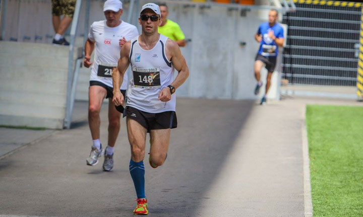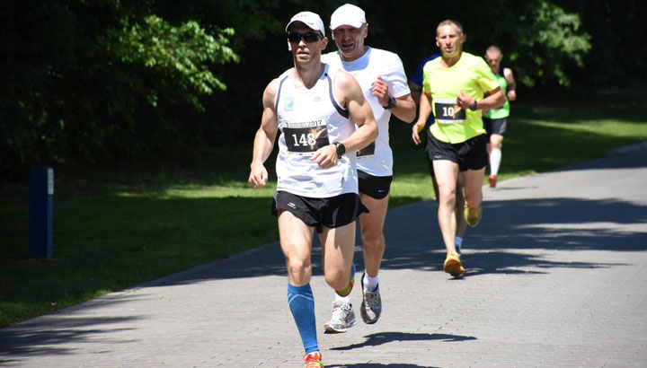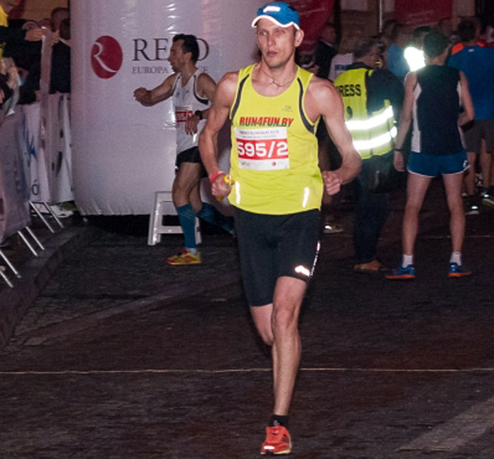 Старт! Становлюсь третьим, впереди бегут два поляка. Первый — знакомый из Белостока Богуслав, с заметно большим темпом. Вторым и третьим пристроились поляк и я. Стараюсь не отставать. Отметку 1 км проходим след в след со временем 3:18. После этого выбегаем на брусчатку. Силы пока есть, поэтому стараюсь удерживаться за соперником, но он потихоньку начинает от меня уходить. Бег в таком темпе начинает конкретно вставлять, а бежать ещё много.
