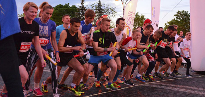 Пролетев границу, устремились в Сувалки. По дороге нас застал проливной дождь, но на подъезде к городу он стих. По приезде в приподнятом настроении отправились на регистрацию. Получили номера и эстафетную палочку. До старта было ещё два часа, но вновь начавшийся ливень не дал сходить на прогулку и полюбоваться красотами города и заставил находиться в buro zawodow. Оценивая регистрирующиеся команды, мы видели, что у нас есть все шансы на попадание в тройку. Меня, как я и предполагал, поставили на первый этап. Ну что ж, буду стараться. За пару минут до основного старта на 10,5 км вызвали команды.