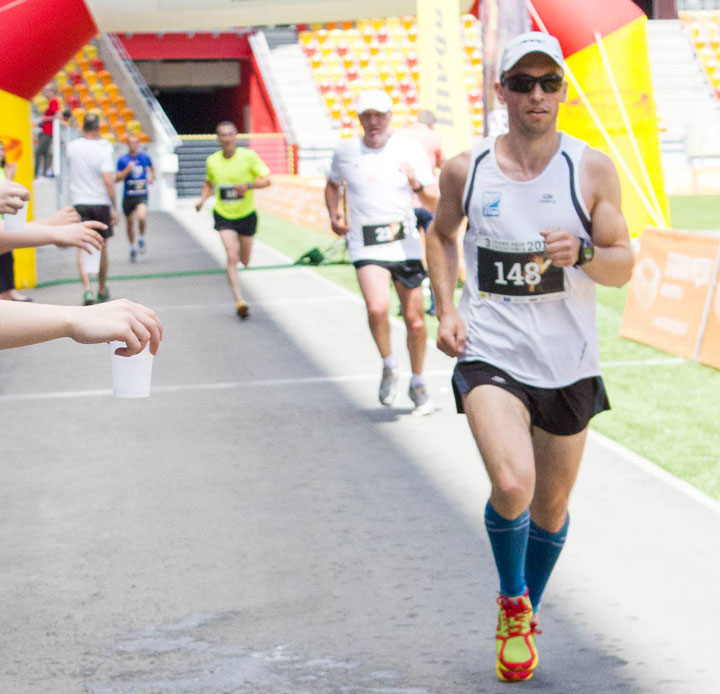 Обессиленный, сажусь сразу за финишем, ко мне подбегает Наташа. Такие приятные слова восстанавливают мои силы, и я опять на ногах. Беру из стартового пакета изотоник и BCAA, замешиваю всё в бутылке и выпиваю. Ждём финиша Димы.